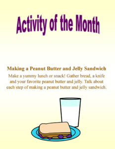 The Moog Center for Deaf Education posts an Activity of the Month each month.  These activities provide parents and primary caregivers with ideas for providing language stimulation to their child with hearing loss within the context of a specific activity.  Sample language is listed at five different levels which correspond with the levels of language development (see Teacher Assessment of Spoken Language in the bookstore for more information about language levels and language development).  If you are interested in previously posted Activities of the Month please contact Betsy Moog Brooks at bbrooks@moogcenter.org.